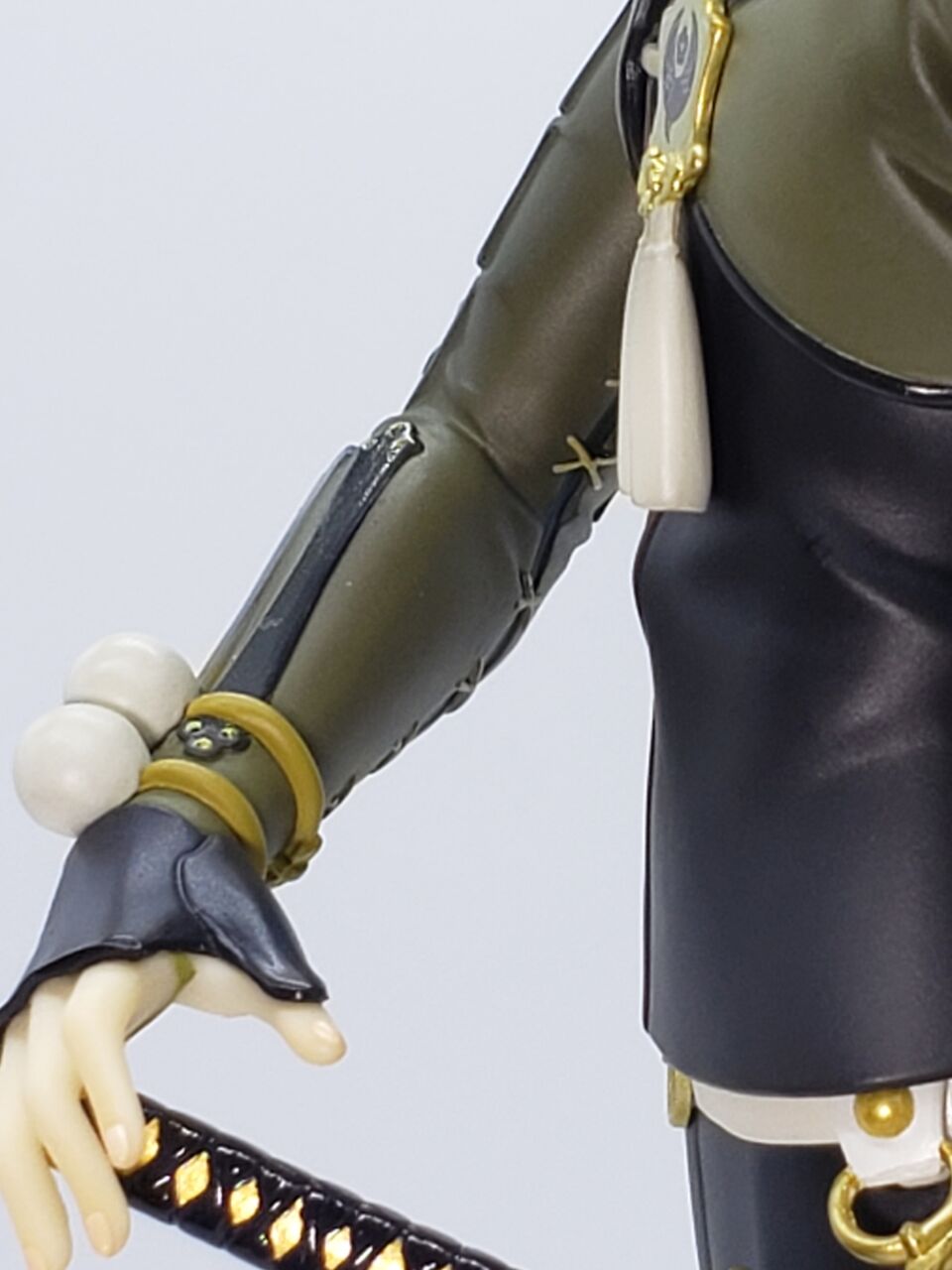 見えるでしょうか、金色で鶯丸の横に原型師のかたと彩色を担当したかたの名前が入ってます。