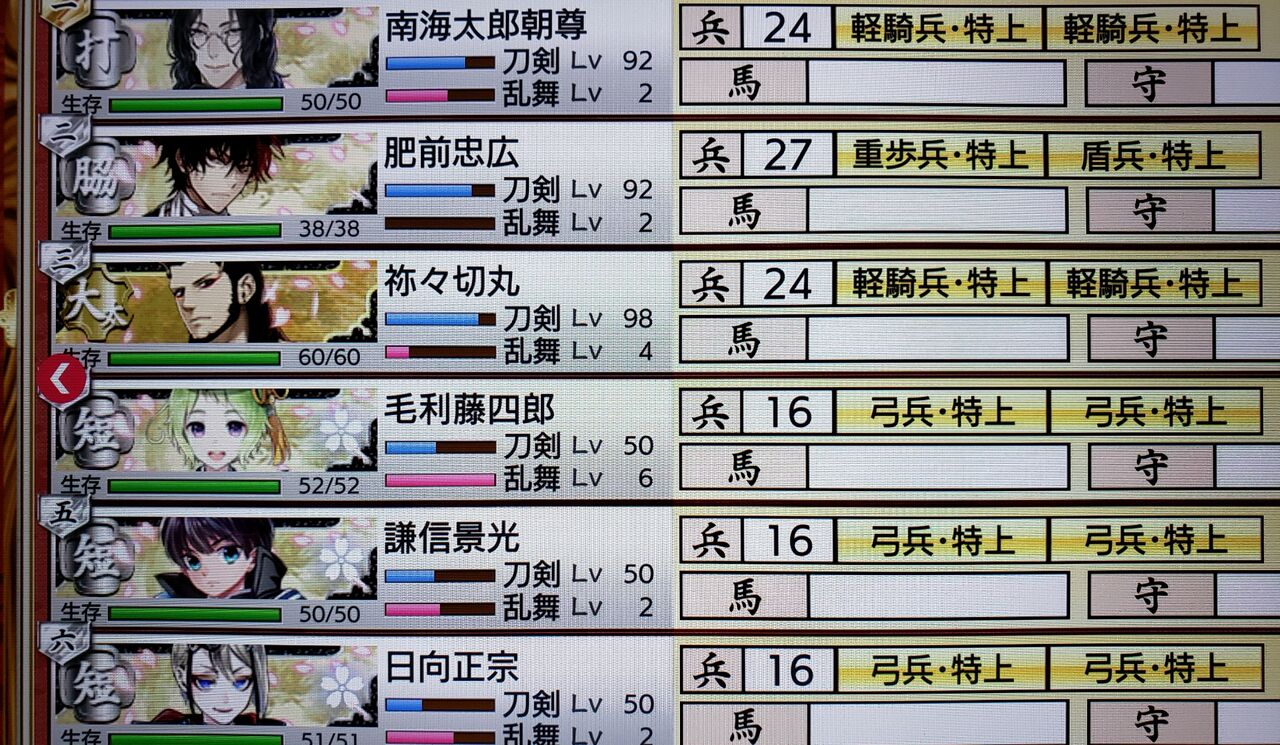 難は攻略サイトにのっていたとおり、極めて帰ってきた南泉を中心に極打刀で編成して臨もうと思います。