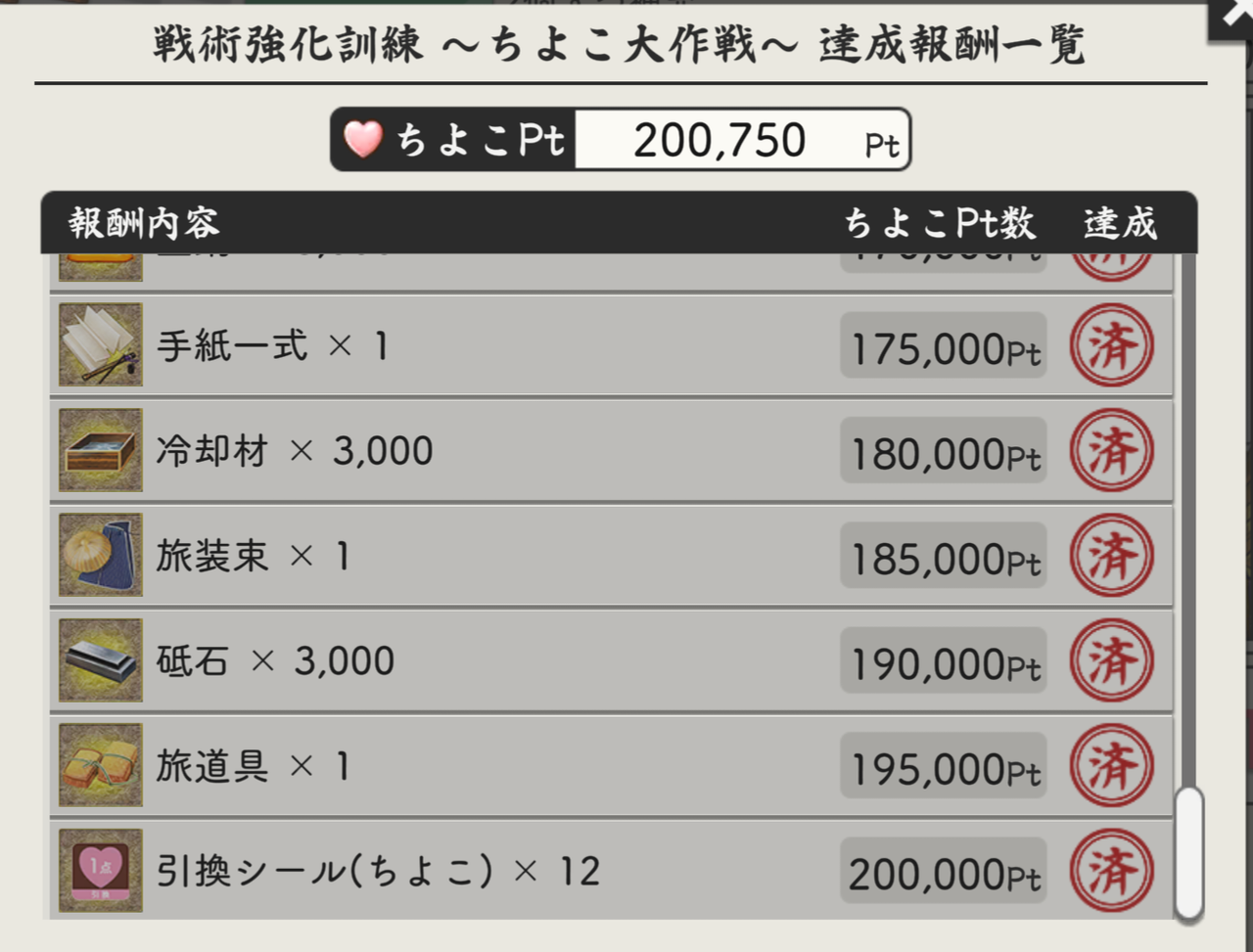 今日現在ちよこPtは20万越えました。