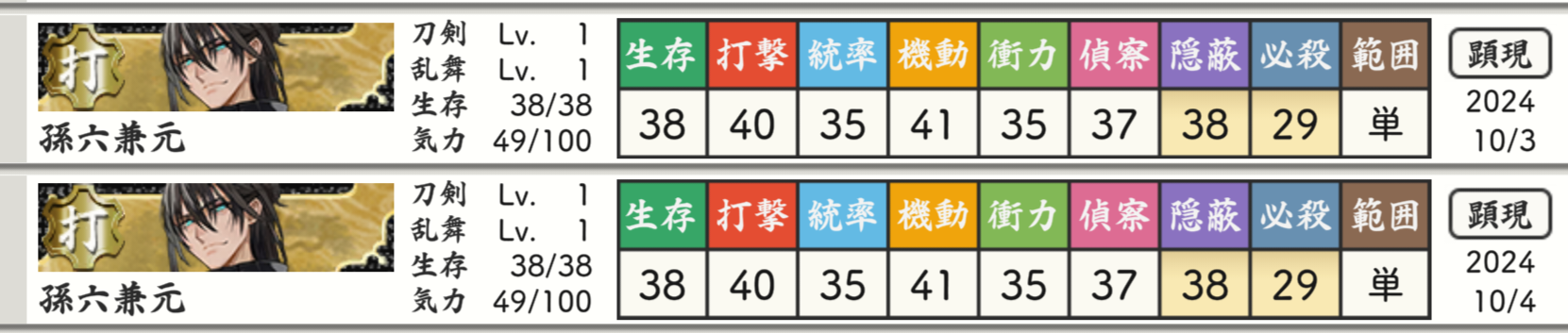 初期からいた男士は交換していて、あと、残りは追加メンバーだけです。