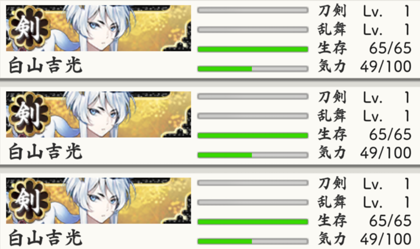 白山吉光ドロップ三振り、130~40、150周くらいで入手できました。