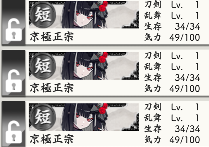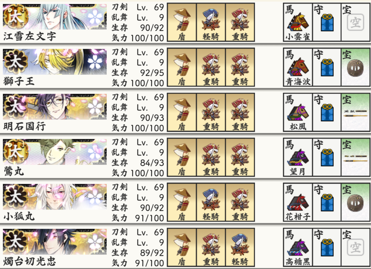 部隊編成はLv99の極短刀六振りです。
