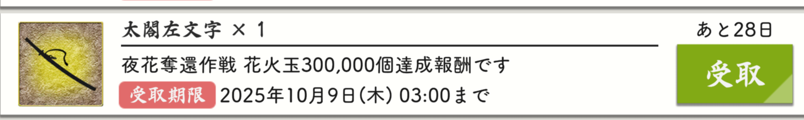 自動行軍を選択していたので達成したときのゲーム画面を撮り逃してしまいました。