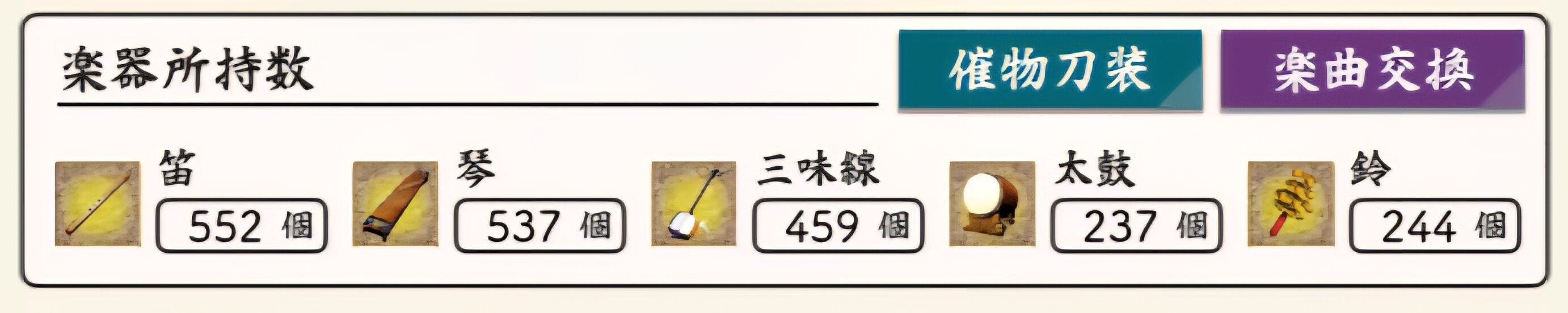 あと、6振り楽器交換で全員交換済みになります、そうしても楽器は余りそうです。